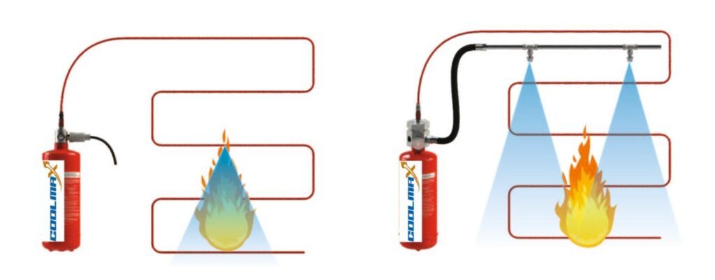 Direct systems are ideal for enclosed or specific risk areas where immediate action is required, such as electrical panels, CNC machines, engine compartments, and critical equipment zones.