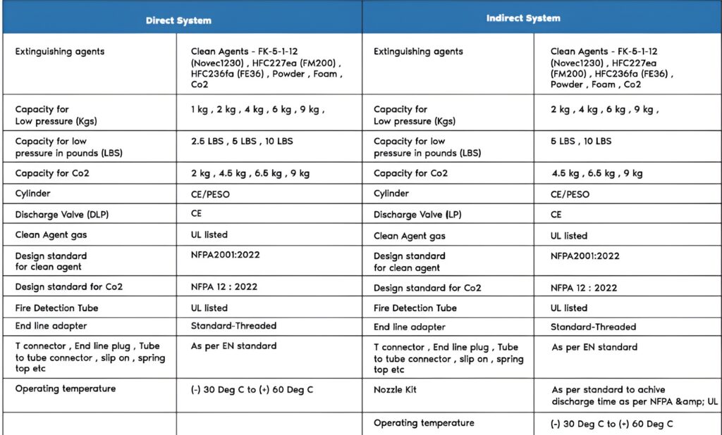 Indirect systems are commonly used in server rooms, control panels, substations, and enclosed spaces where fire may spread rapidly and direct access to the source is limited.